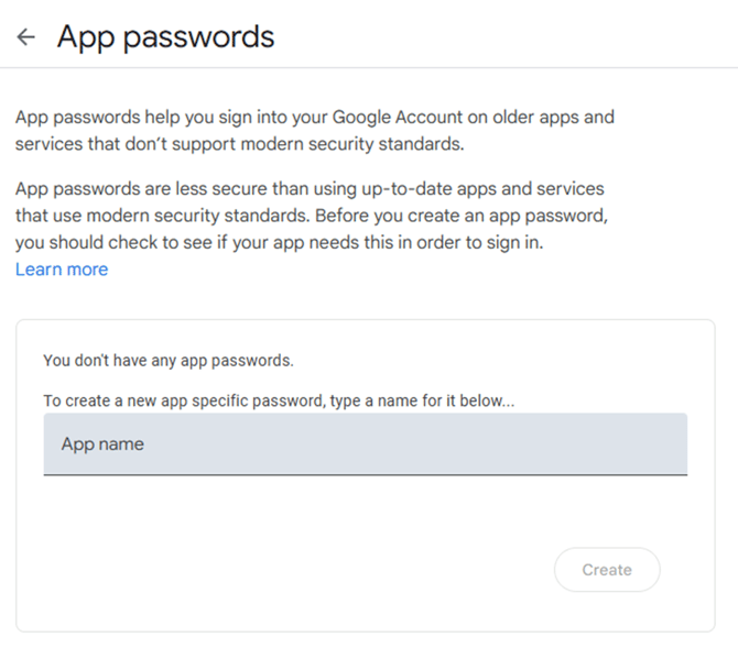 ⚠️ 2-Step Verification (2FA) must be enabled on your Google account first. Without this, the option to create an App Password will not be available.