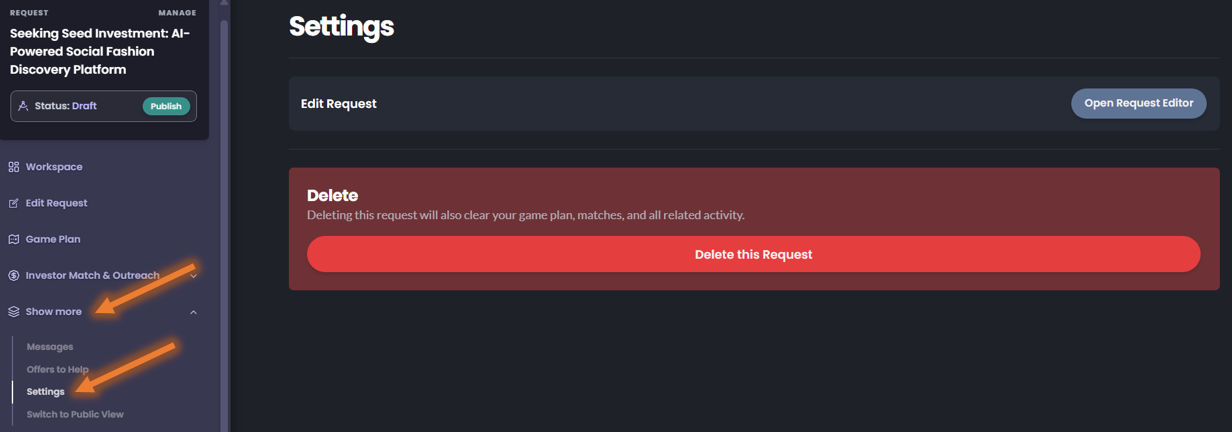 Published requests can also be deleted. Please make sure you truly want to permanently remove the request before confirming.