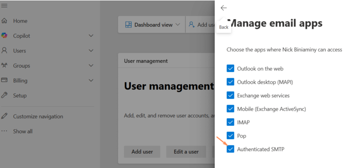 2. Enable SMTP AUTH for a Specific Mailbox