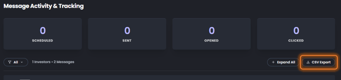 In addition to the above, the Message Activity dashboard now includes a filter option, allowing you to narrow down the list of investors/messages by status and engagement type. Specifically, you can filter by: